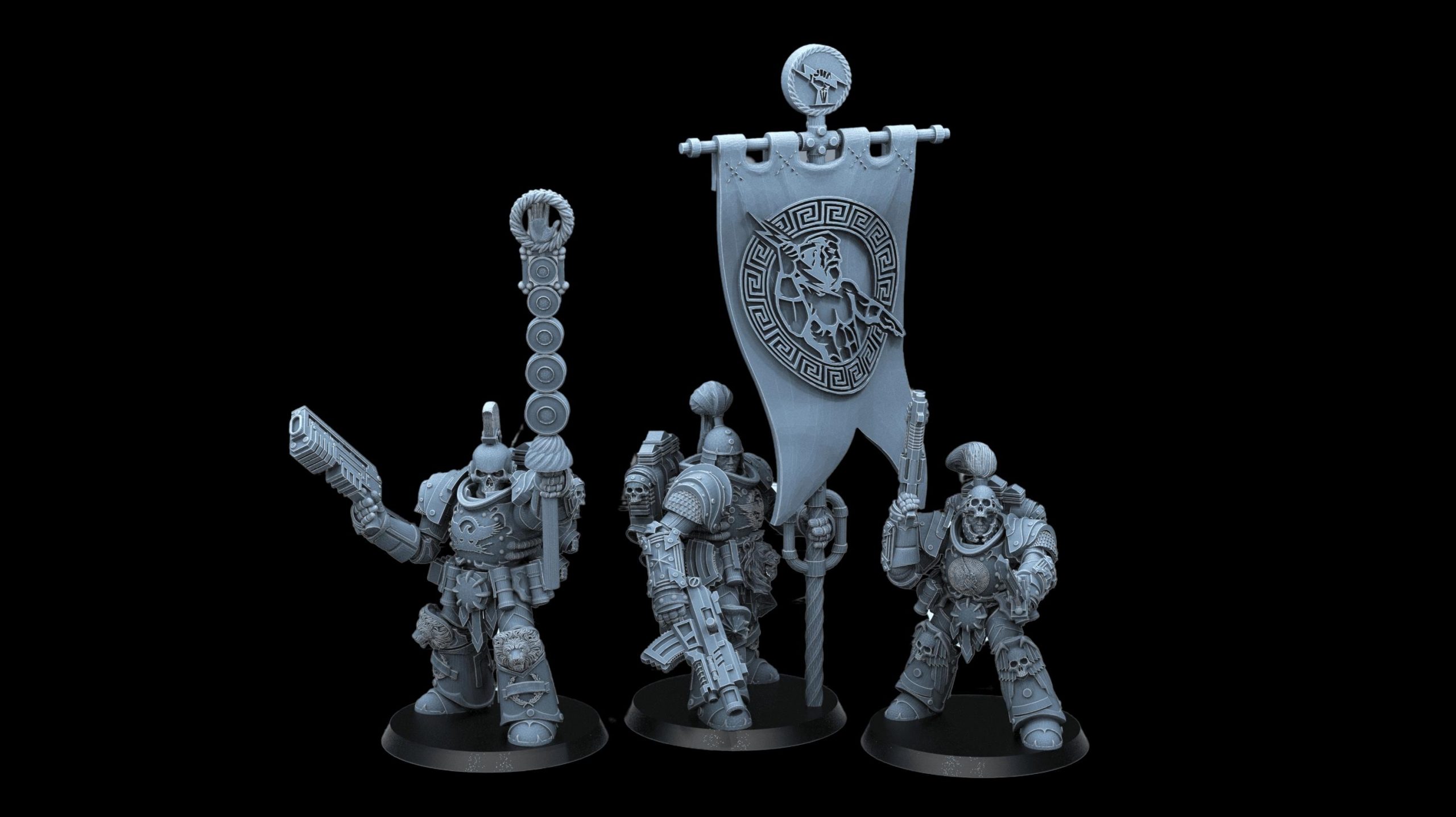 Ici, une escouade de de commandement de 3 Conquérants Mythiques.