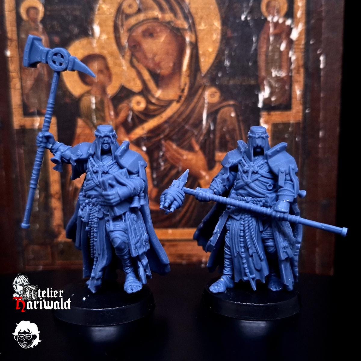 Je suis l’Atelier Hariwald, partenaire officiel du sculpteur DIMOMODELS et je vous propose sa gamme de figurines alternatives pour jeux d’escarmouche à ambiance Grimdrk. Ici, une alternative pour les personnages ou troupes d’élites de pèlerins.