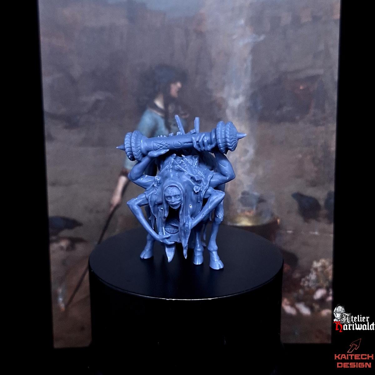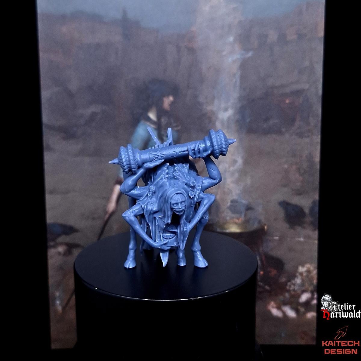 Je suis l’Atelier Hariwald, partenaire officiel du sculpteur KAITECH et je vous propose sa gamme de figurines alternatives jeux à ambiances Grimdark. Ici, une figurine pouvant incarner un mercenaire dans le jeu Trench Crusade ainsi qu’une nouvelle version de la Sorcière à obus.