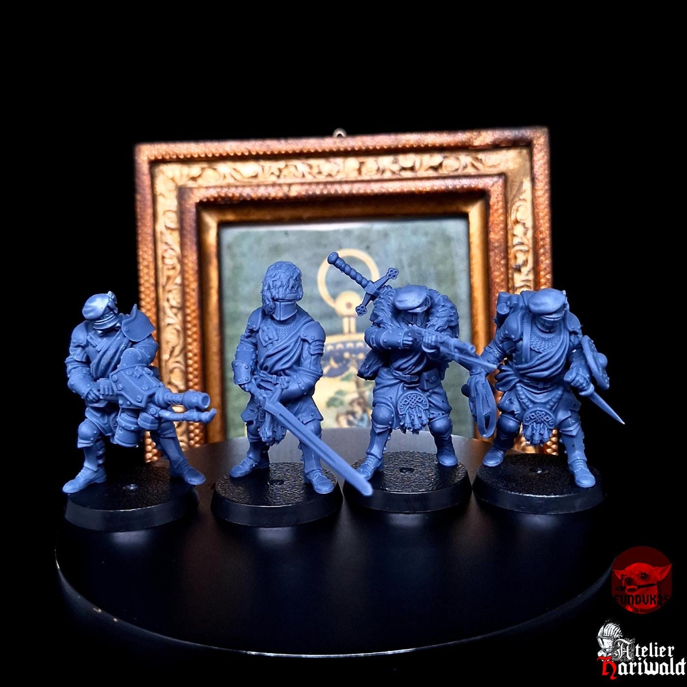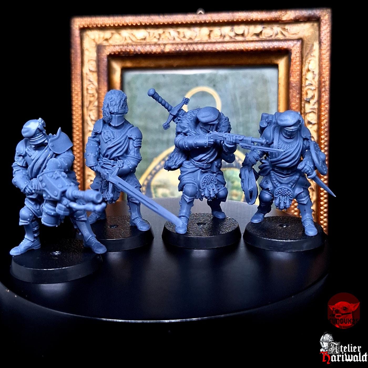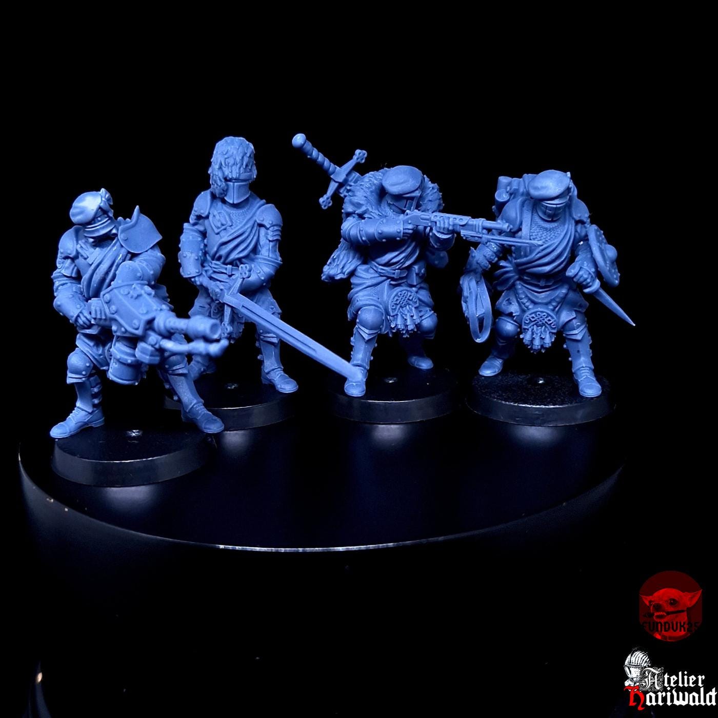 Pack de 4 figurines, un peu de collage à prévoir. Fournies avec socles 25mm.