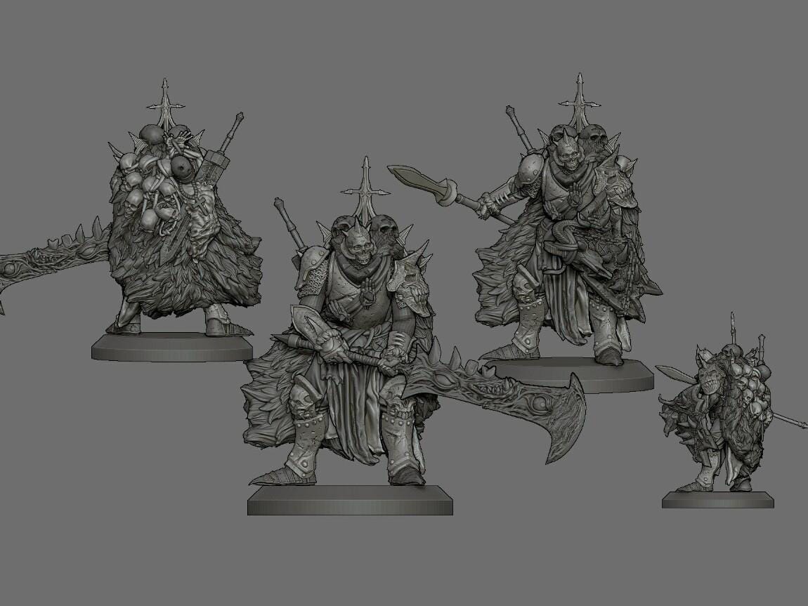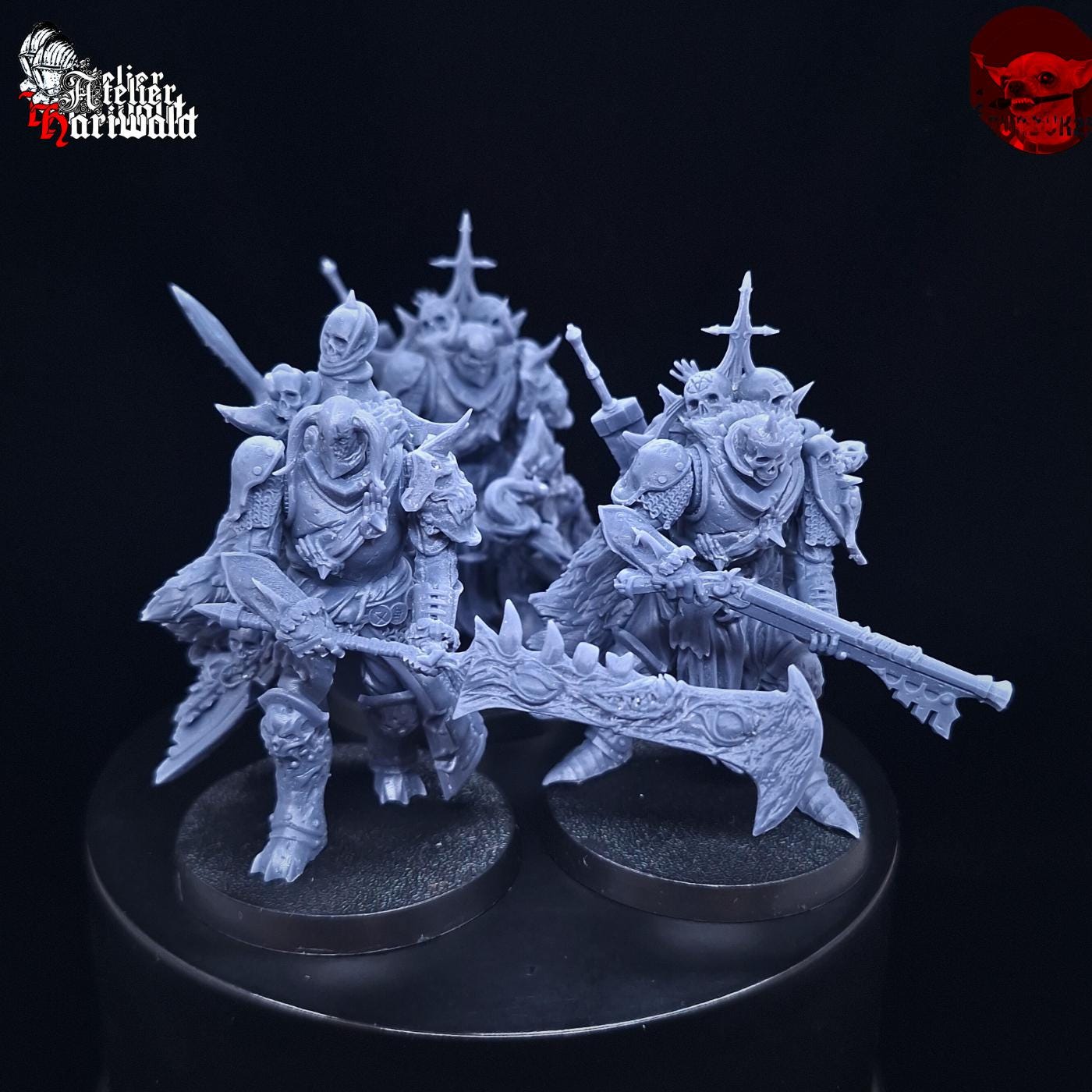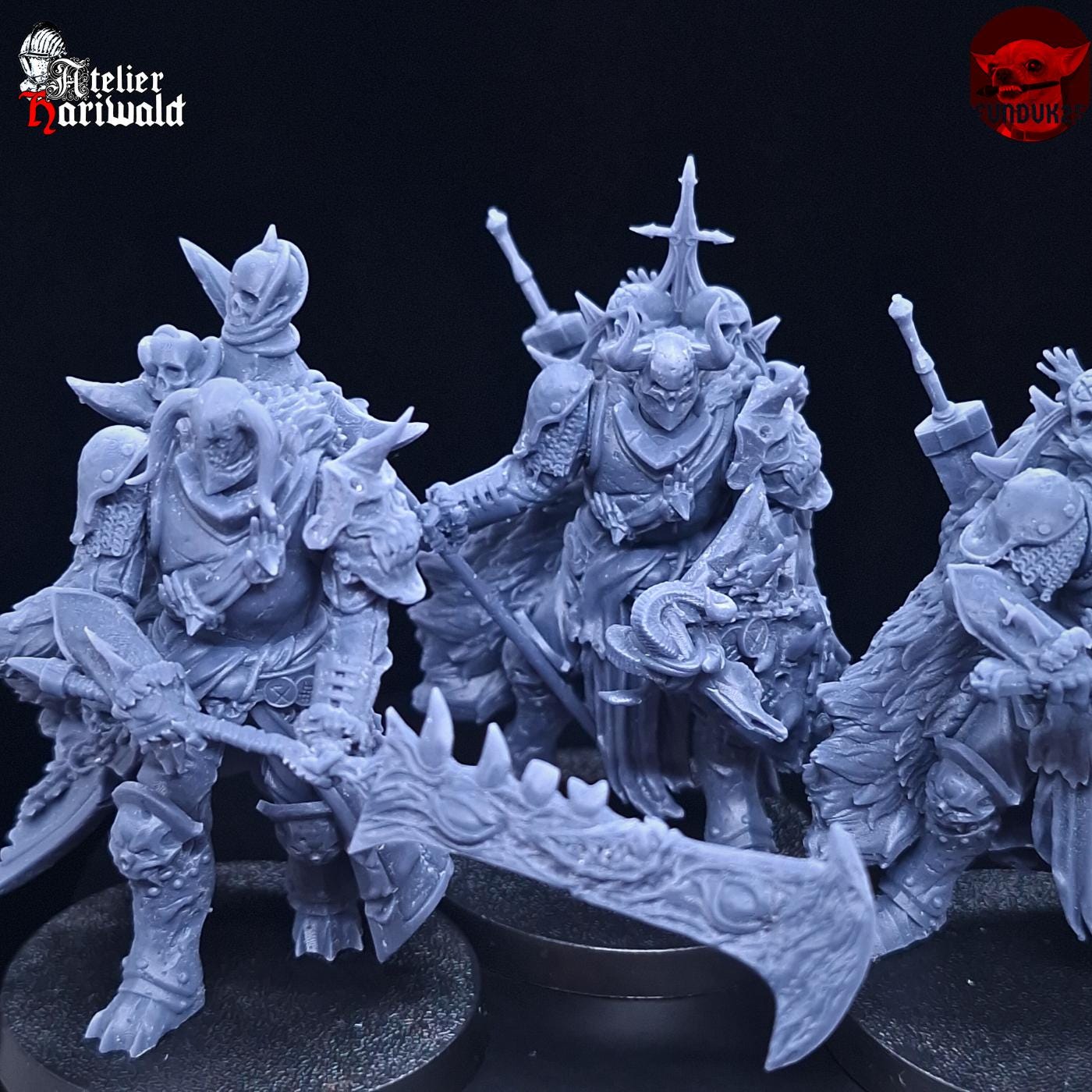 Ici, les Hell Knights. Une sélection de 3 corps, 6 têtes et 4 variations d’équipements. Socles 40mm fournis.