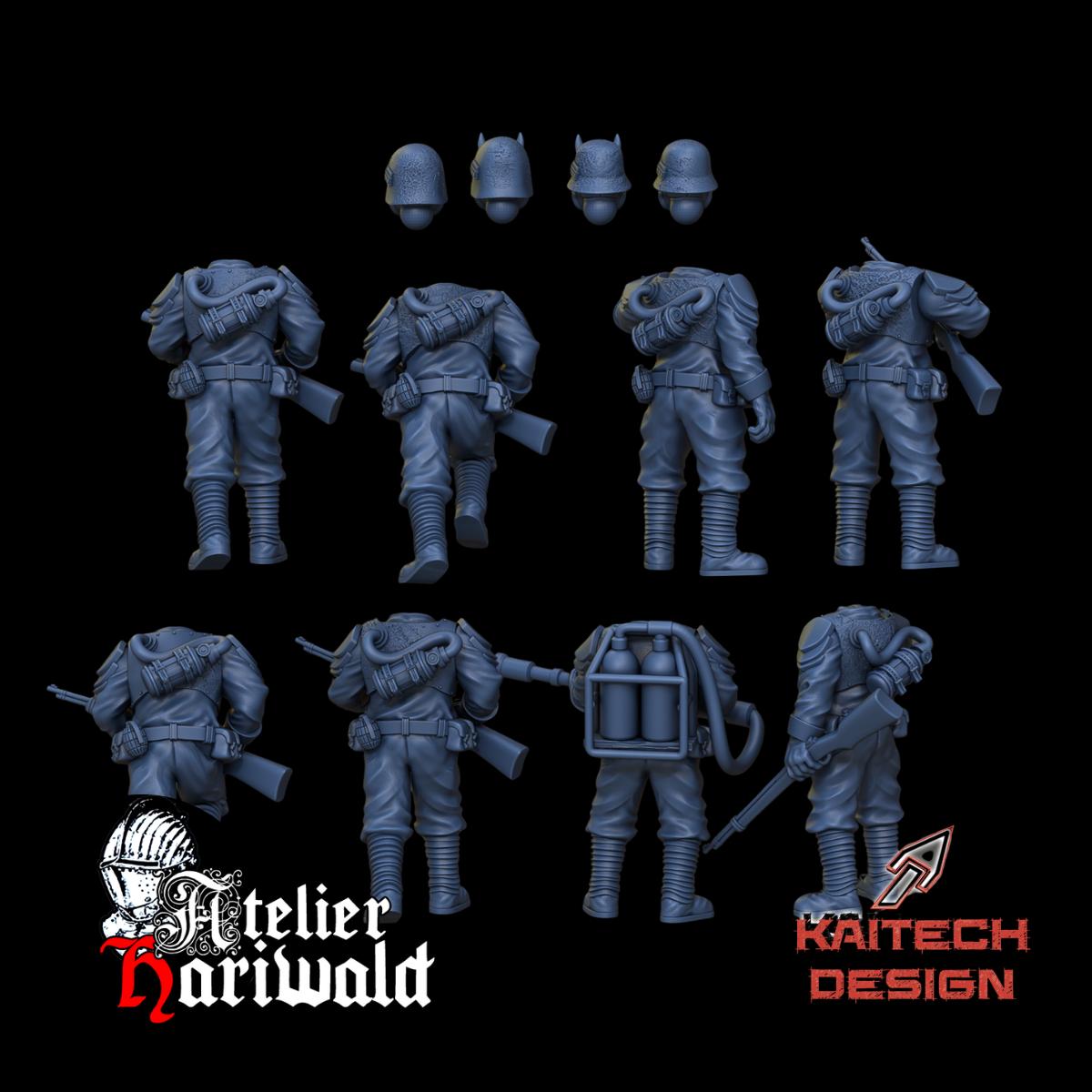 Je suis l’Atelier Hariwald, partenaire officiel du sculpteur KAITECH et je vous propose sa gamme de figurines alternatives pour le jeu Trench Crusade. Ici, une sélection de troupes pour les Hérétiques.